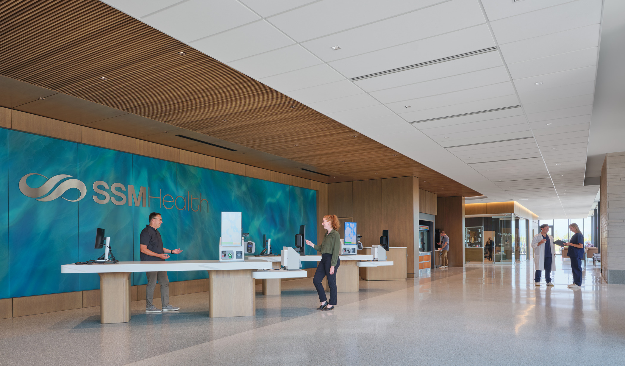 SSM Health partnered with Kahler Slater to address the growing need for additional healthcare access in the thriving city of Sun Prairie. The 90,000 square foot outpatient center expands specialty services in Dane county with surgical orthopedics care and comprehensive eye care services.