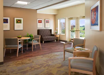 The patient rooms maximize views to the gardens while maintaining visual privacy. Each bedroom has a private patio garden which connects directly to a winding, paved trail that meanders through the community gardens and around the property. Family involvement is encouraged, with accommodations provided in a small nook in each bedroom, offering a space for family members to visit or stay overnight.