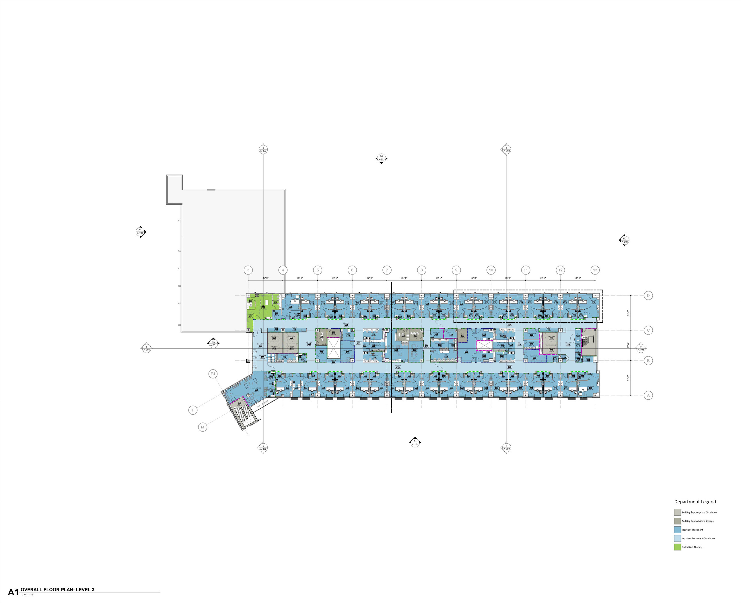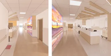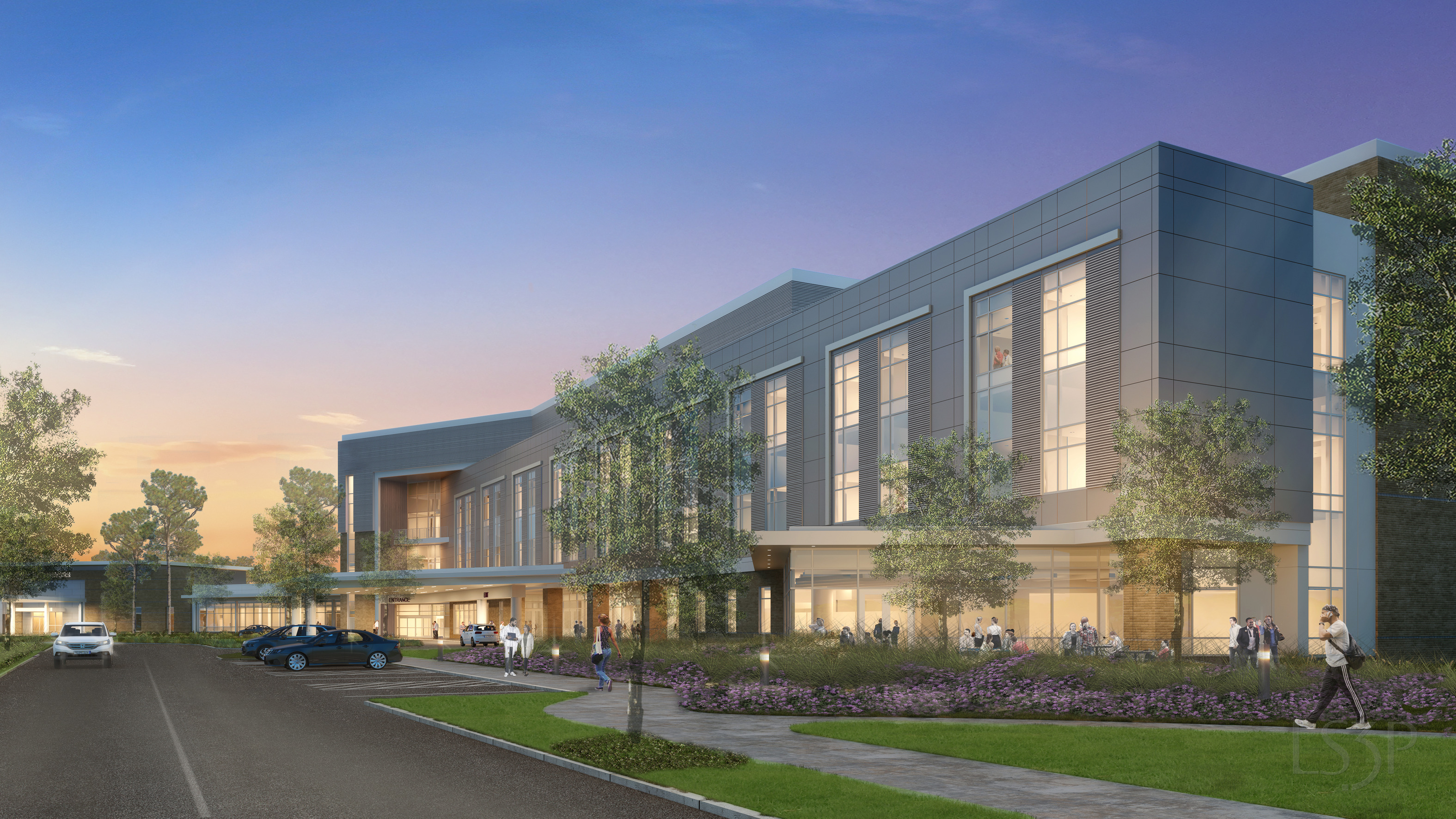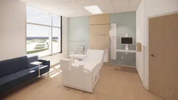 The existing Scotts Hill site included an Ambulatory Surgery Center (ASC) and a standalone Emergency Department with a helistop. The expansion includes a new 66-bed hospital (with future capacity for 250 beds) and a 60,000 bgsf Medical Office Building (MOB), expandable to 120,000 bgsf. The hospital will feature 58 medical/ surgical rooms, 8 intensive care units, 6 observation rooms, 8 operating rooms, and a full imaging department. The MOB will house outpatient services, screenings, and physician offices.