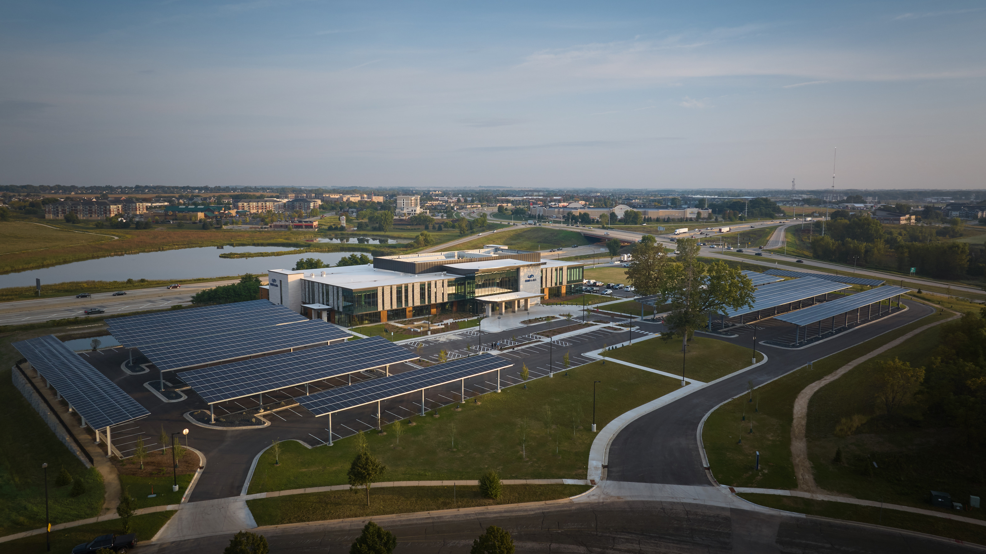 SSM Health partnered with Kahler Slater to address the growing need for additional healthcare access in the thriving city of Sun Prairie. The 90,000 square foot outpatient center will expand specialty services in Dane county with surgical orthopedics care and comprehensive eye care services.