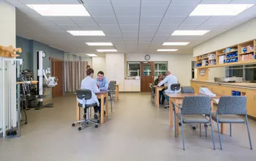 The first floor primary care clinic was also renovated to include eight new exam rooms for Froedtert Health Community Physicians. A shared conference and break center for all staff was provided. The clinic expansion was designed with phased construction in mind, so the existing clinics could remain operational during construction.