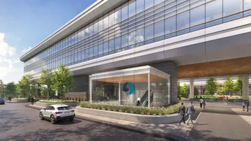 The multi-year renovation encompasses approximately 800,000 square feet and replaces the original brutalist façade with expanded glazing and refined detailing to bring in natural light and create a more welcoming campus identity. Inside, the design prioritizes flexibility and connection, with modern workspaces, collaborative environments, and integrated technology that support a hybrid workforce.