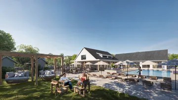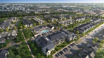 Situated on a 36-acre site, the development emphasizes walkability and connectivity with pedestrian trails, green spaces, and a public plaza. Diverse housing options and integrated amenities create a vibrant neighborhood that blends seamlessly with the surrounding community.