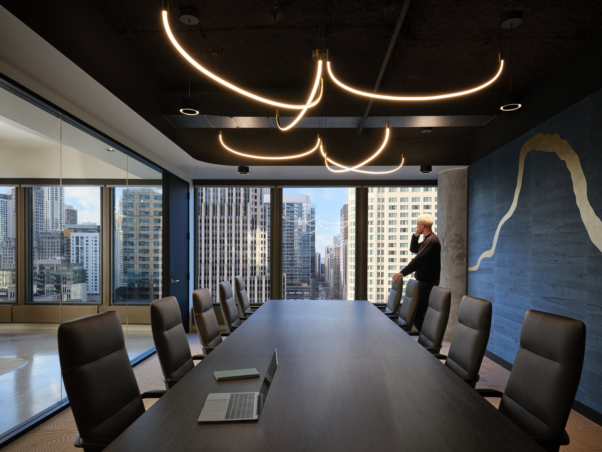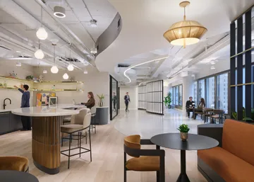 Layered textures and subtle golden accents, a homage to the art of Kintsugi, fill the suite with quiet strength and poetic beauty, celebrating imperfection and resilience. This distinctive yet approachable design positions Suite B as a compelling leasing tool, elevating the tenant experience and setting 303 E. Wacker apart within Chicago’s competitive office landscape.