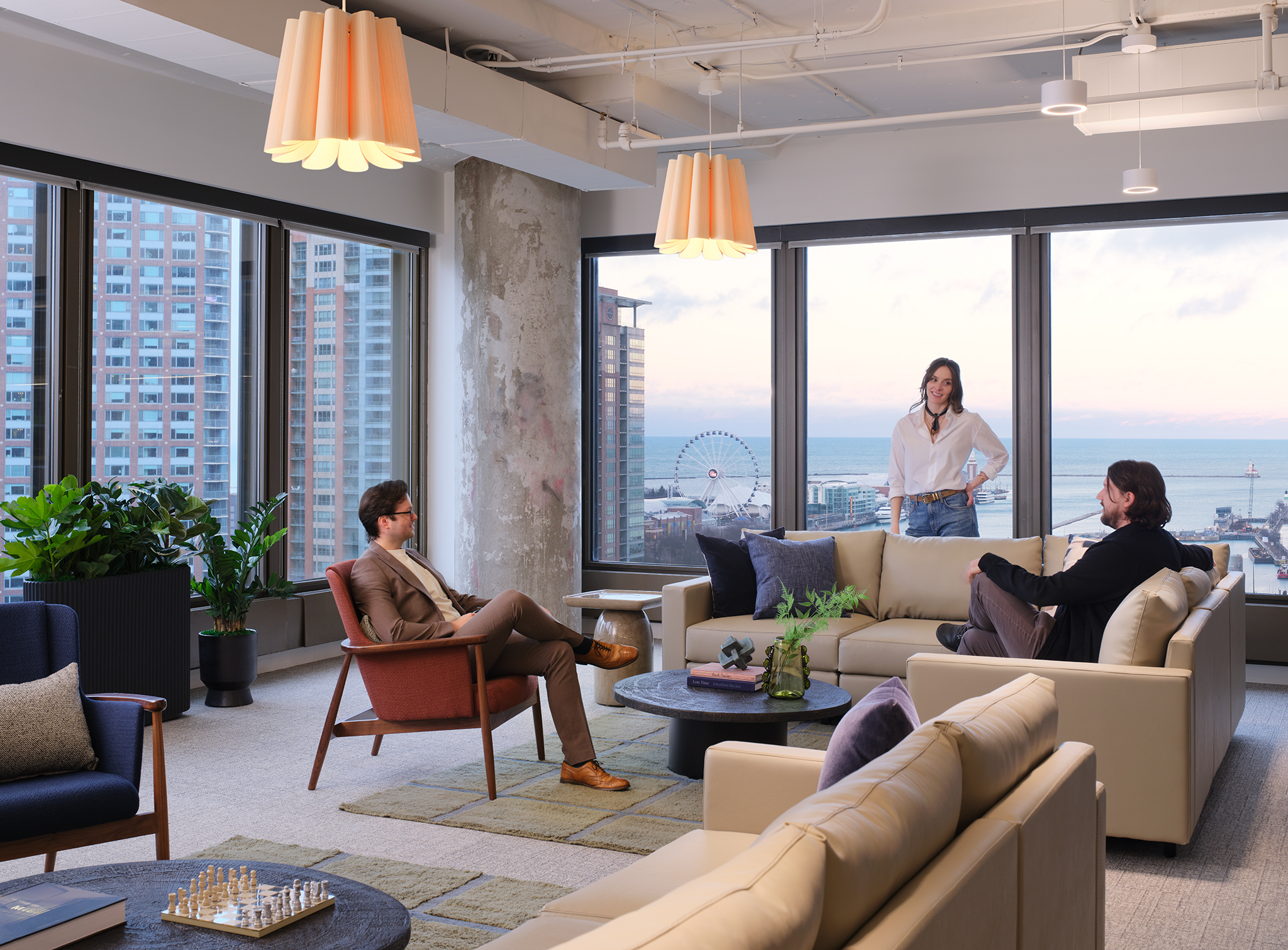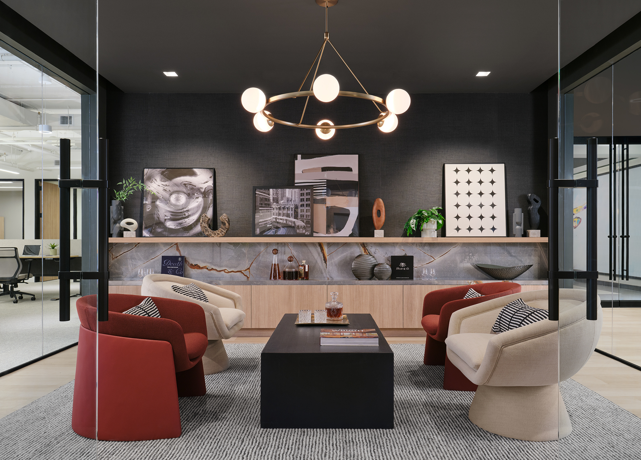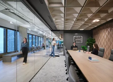 Kahler Slater was tasked with designing a spec suite at 303 East Wacker Drive in Chicago, totaling approximately 16,000 RSF. The suite is thoughtfully crafted to leave a lasting impression on prospective tenants, offering bespoke features that set them apart from anything currently available on the market.