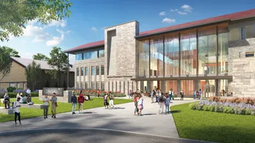 The proposed three-story building will be located north of the Van Male Field House, also designed by Kahler Slater. The facility will feature a 300-seat auditorium, an innovation center, an engineering lab, offices, a deck for an outdoor classroom and a coffee bar. Kahler Slater is working with VJS Construction on this project.